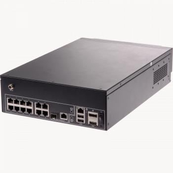 - Integrierter 12 Port PoE-Switch mit 135W Budget