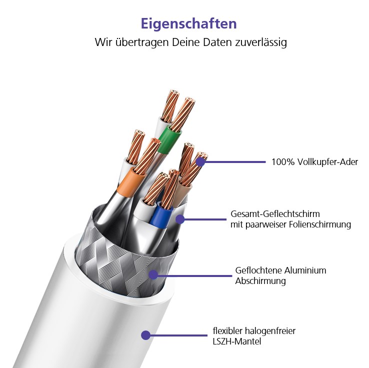 Zudem ist es extrem flexibel und belastbar, Twisted Pair, doppelt geschirmt, 4 x 2 x AWG 27 und hat vergoldete Kontakte.