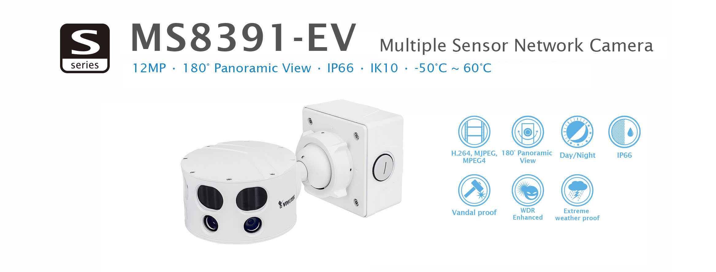 Die VIVOTEK MS8391-EV ist ausgestattet mit mehreren Sensoren und bietet so eine höhere Auflösung, die das Sichtfeld maximiert und somit die Gesamtanzahl der erforderlichen Kameras verringert, wodurch die Installationskosten gesenkt werden. Mit 4 x 3MP CMOS-Sensoren, bietet die Multi-Sensor-Netzwerk-Kamera eine hochwertige und flächendeckende Abdeckung, so dass eine ideale Outdoor-Überwachungslösung mit schärferen Bildern entsteht. Mit einem breiten Blickwinkel von 180 Grad, bietet die MS8391-EV komplette Videosicherheit ohne einen toten Winkel.
