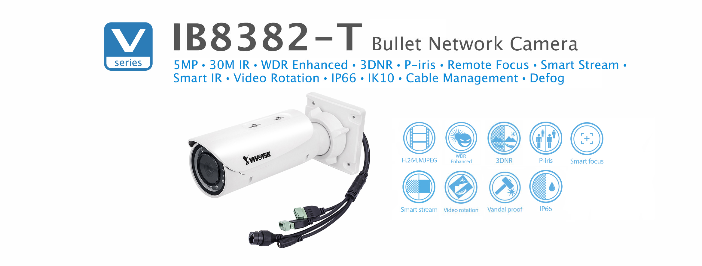 Die VIVOTEK IB8382T ist eine professionelle Outdoor Bullet Netzwerkkamera, ausgestattet mit einem leistungsfähigen 5 Megapixel Sensor zu einem guten Preis-/Leistungsverhältnis. Ausgestattet mit einem neuen hochauflösenden Bildsensor, unterscheidet sich die IB8382T von anderen 5MP Kameras durch schärfere Bildqualität und feinere Details zu einem kostengünstigen Preis. Die leistungsstarke 3D Rauschunterdrückung und Smart Stream Technologie ermöglichen es der IB8382T die Effizienz der Bandbreitennutzung noch weiter zu optimieren.
